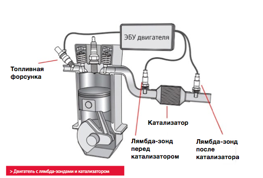 Когда смесь слишком бедная – увеличивается. Оптимальное соотношение «воздух-топливо» обеспечивает полное сгорание топлива и использует почти весь кислород из воздуха. Оставшийся кислород в катализаторе вступает в химическую реакцию с токсичными газами, в результате которой из выхлопной трубы выходят газы, которые удовлетворяют экологические требования.