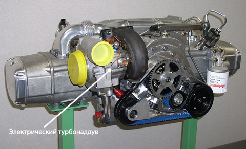Решение опять же нашлось в давней идее, которую ряд компаний обкатывал, но до ума никто так и не довёл. На вал классической турбинки инженеры поставили электродвигатель. При запуске и до тех пор, пока ДВС не набрал обороты, этот моторчик получает энергию от батарей, обеспечивая «дыхание» OPOC. А далее мотор отключается, и турбонаддув превращается в самый обычный. Более того, на высоких оборотах, когда поток выхлопных газов велик, электромотор в турбине может превращаться в генератор, подпитывающий батареи машины.