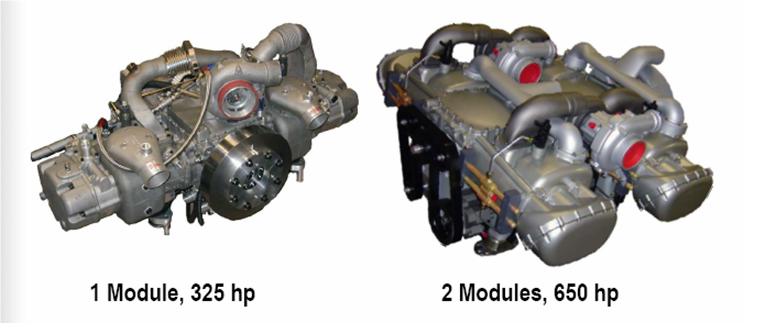 При перенастройке параметров работы в сторону экологичности ОРОС выдает 300 л.с. и 746 Нм. Улучшение экономичности против обычных дизелей в таком случае обещано «всего» 15-процентное, но и оно выглядит огромным шагом вперёд, так как обычно компании борются за каждый процент. Дальнейшая экономия возможна при объединении пары таких моторов в четырёхцилиндровый агрегат. То, что раньше было самостоятельным мотором, превращается в модуль. Между ними EcoMotors намерена ставить управляемую электроникой муфту. При малой нагрузке, мол, будет работать только один модуль, при большой — подключится второй. А так как OPOC хорошо уравновешен, все действующие силы тут компенсируют друг друга и мотор отличается минимумом вибраций, то и активация «спящей» половинки в любой момент пройдёт гладко.