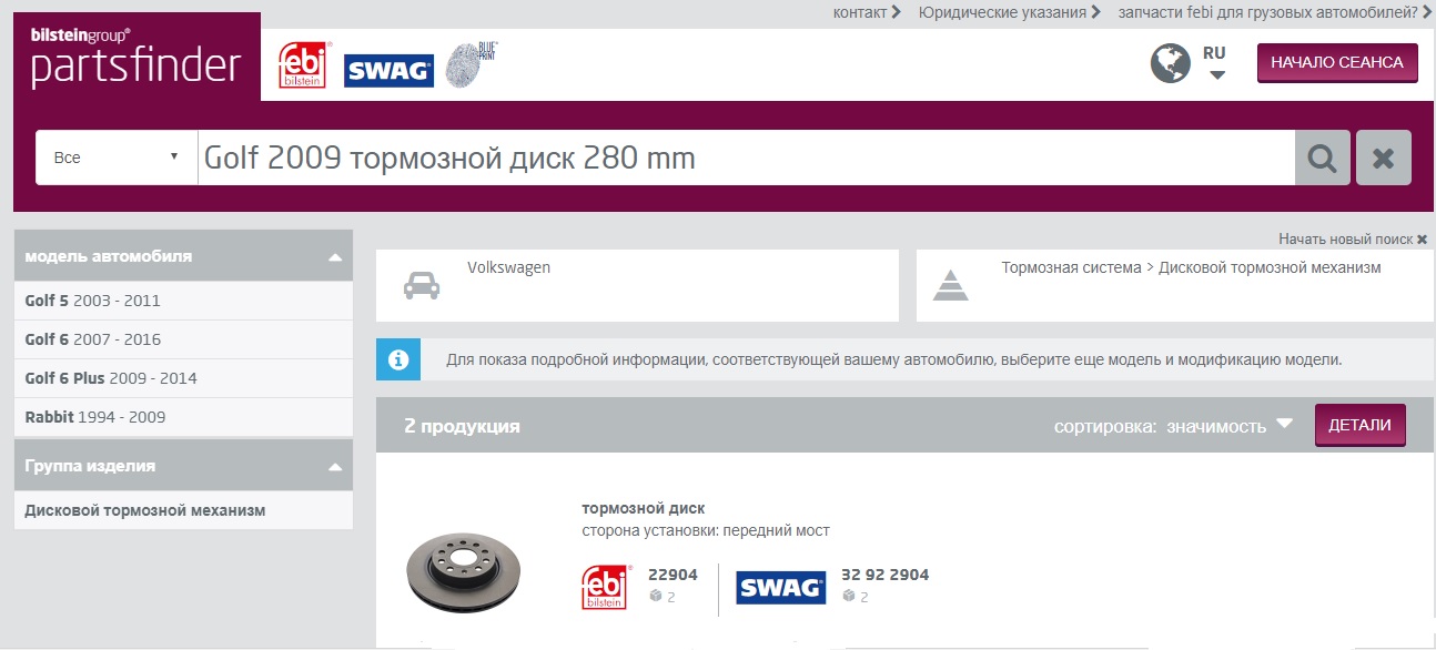 Программа partsfinder, объединила полный перечень всех запасных частей широко известных торговых марок febi, SWAG и Blue Print в единой системе. Поисковая система является бесплатной, пользоваться ею можно без регистрации. Зарегистрированный пользователь имеет доступ к дополнительным эксклюзивным функциям, например, сохранению результатов своего поиска.