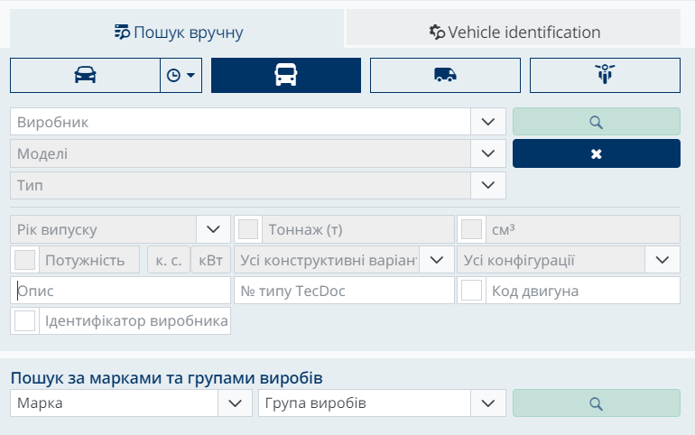 У сегменті комерційних автомобілів додано окремі поля ручного пошуку. Тепер користувачі для більш точної ідентифікації деталі можуть зазначити наступні параметри:
