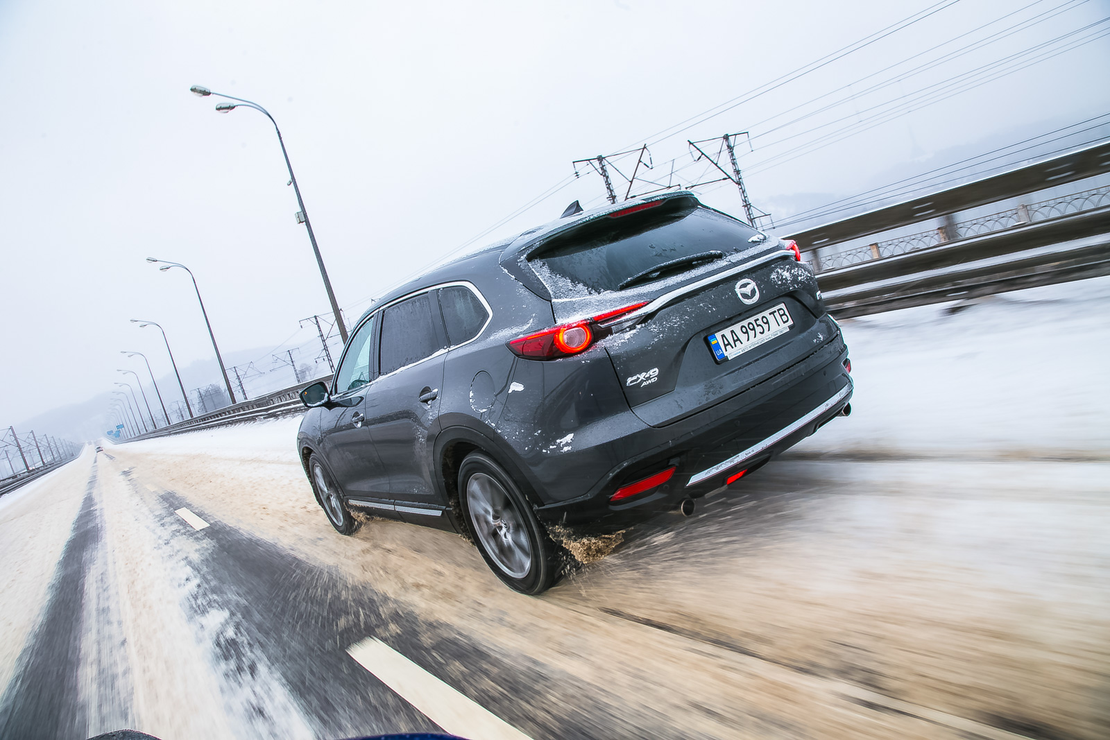 CX-9 без проблем держится в интенсивном траффике, и легко разгоняется до шоссейных скоростей, без проблем обгоняя на скоростях свыше 100 км/ч. Выкручивать двигатель к красной зоне нет необходимости, основная отдача турбомоторов сконцентрированна в средней зоне оборотов. Первую сотню двухтонный кроссовер разменивает всего за 8,6 секунды, что достаточно неплохо для машины этого класса.