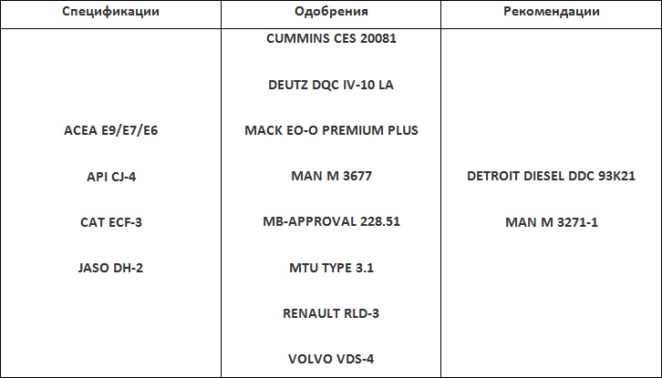 Допуски FUCHS TITAN CARGO EU6 SAE 5W-30