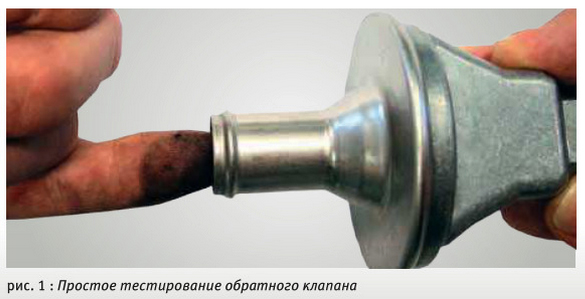 Если на этой стороне клапана имеются отложения (проверка на ощупь, рис. 1), то обратный клапан подлежит замене. В этом случае насос вторичного воздуха уже может быть поврежден.